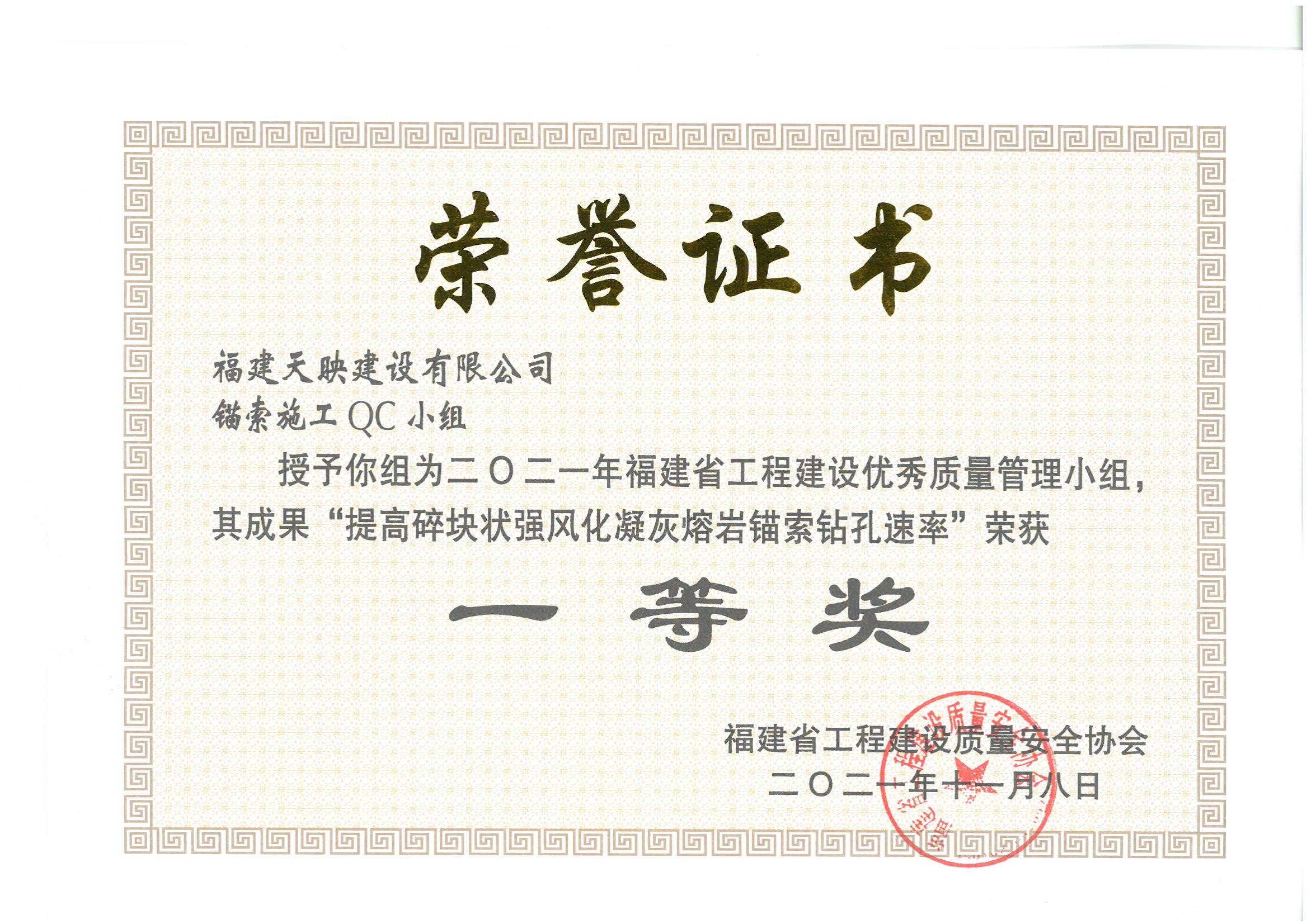 天映建設(shè)錨索施工QC小組獲QC省級(jí)一等獎(jiǎng)