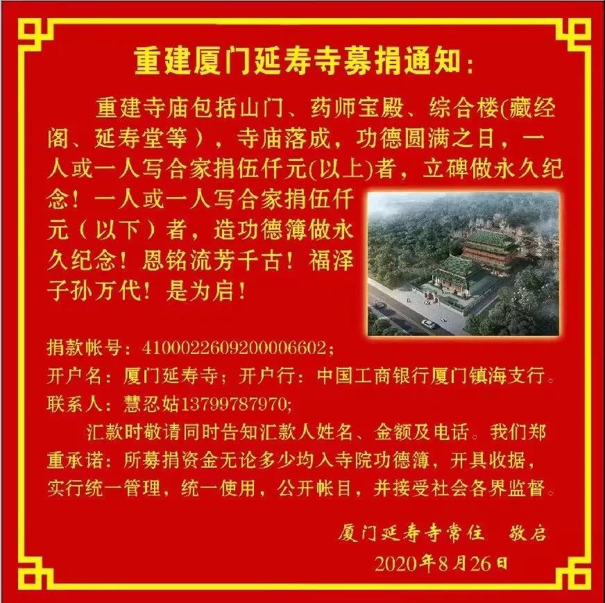 募捐 | 重建廈門延壽寺募捐緣起