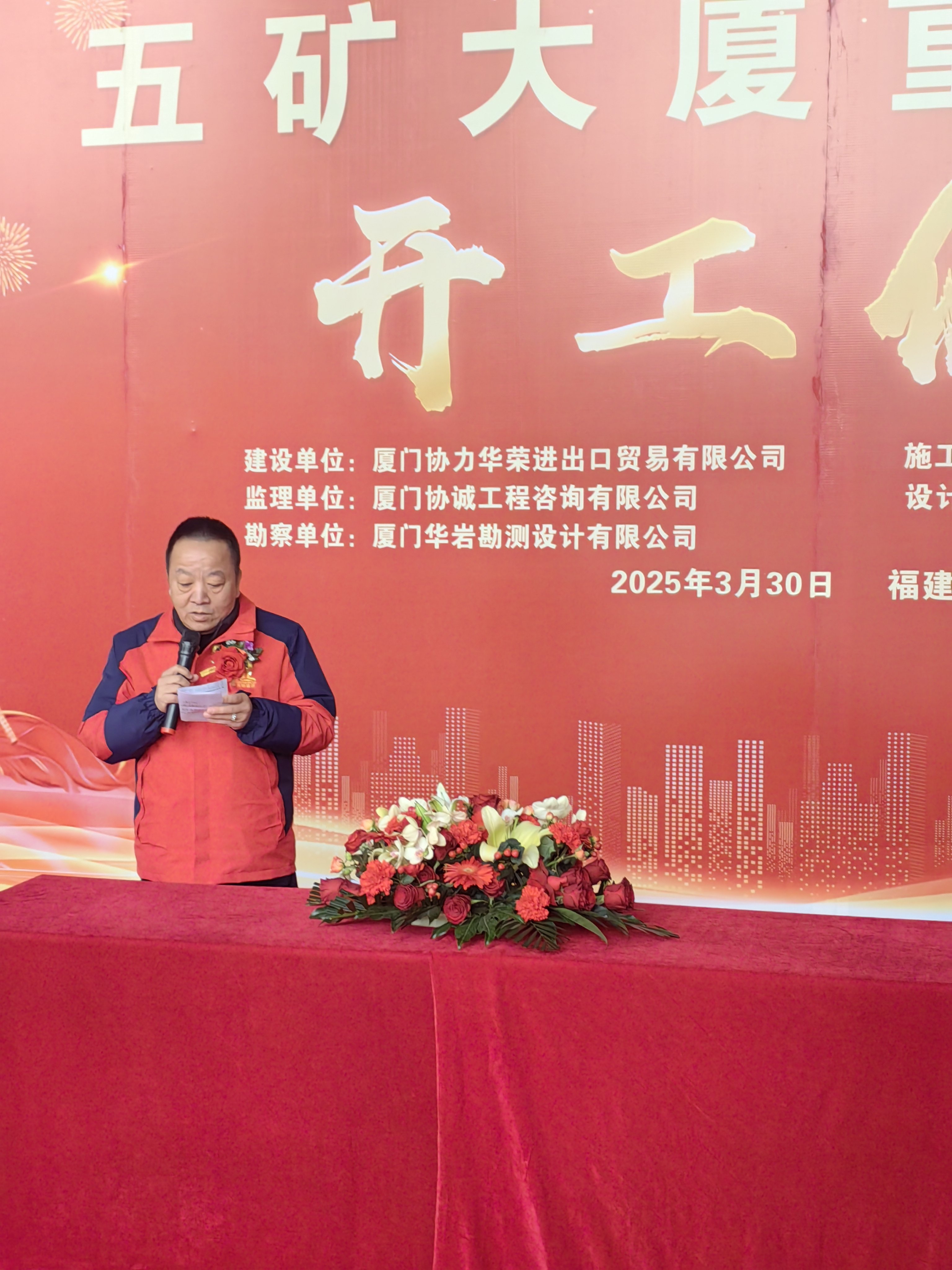 廈門(mén)協(xié)力華榮進(jìn)出口貿(mào)易有限公司、福建天映建設(shè)有限公司的高層領(lǐng)導(dǎo)以及特邀嘉賓共同出席了開(kāi)工奠基典禮,在眾目期待中,各方賓客共同見(jiàn)證這一歷史時(shí)刻。