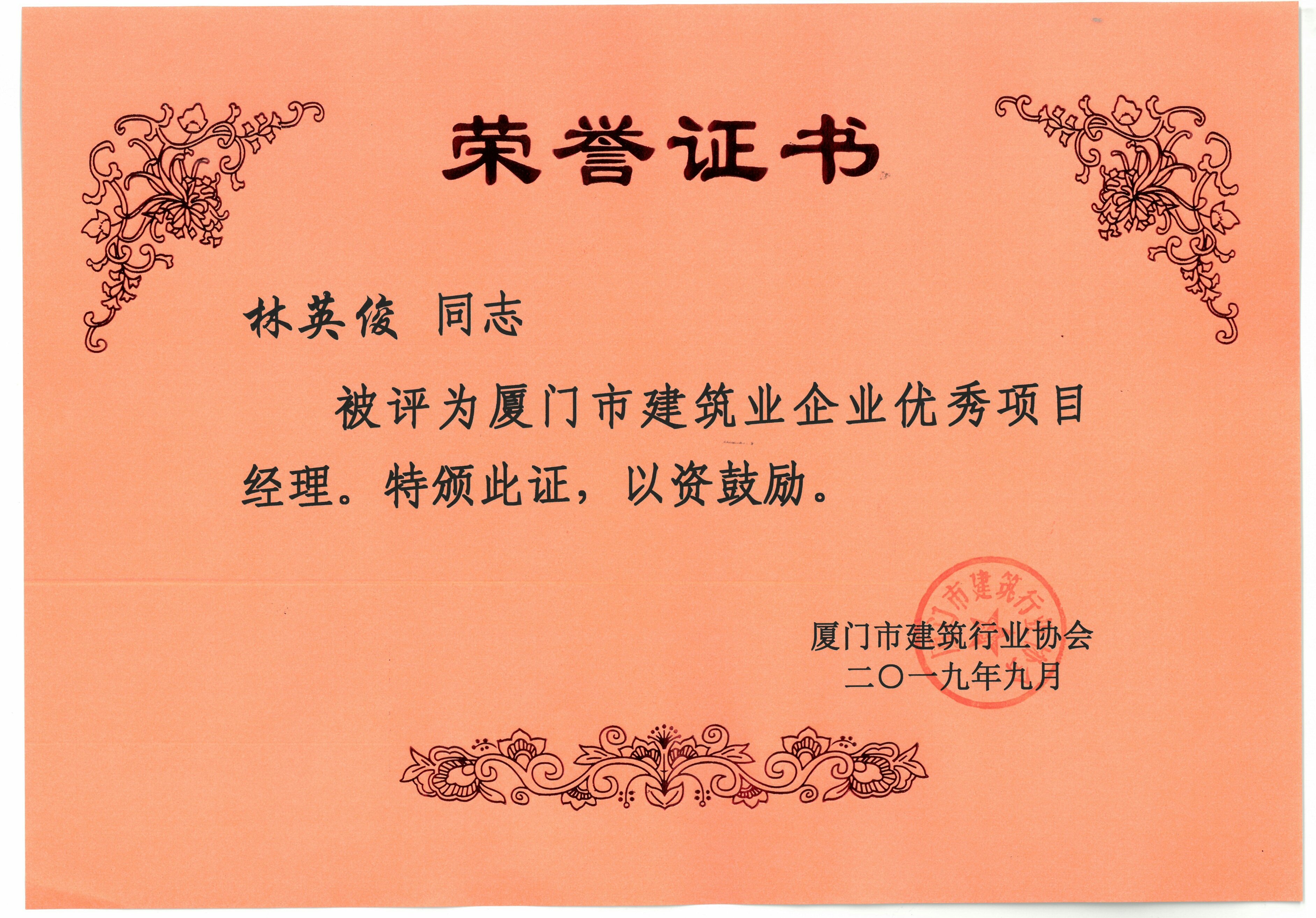 天映——廈門市建筑業(yè)企業(yè)優(yōu)秀項目經(jīng)理 林英俊